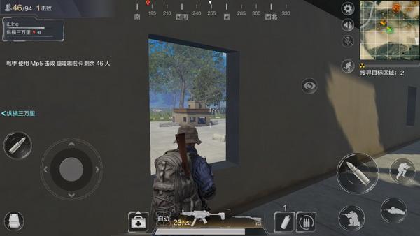 而在实战策略中,以猥琐为主,在移动过程中尽量选择贴墙行走,或者一切其他安全的路线。对于某些热点位置可以事先埋伏,占领战术制高点,推荐高建筑平台或者房屋窗口。如果在草地上,因为草丛会影响视野,此时可以选择蹲式,保持最佳距离静候其他玩家。