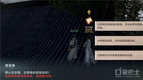 例如,在江南剧情中,随着剧情的深入,玩家会发现左明珠与施茵两位千金原来各自心有所属,但左小姐或许所托非人……此处,随着玩家的选择,可能会产生三种不同的结果。