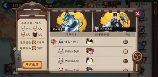 会长当关,万夫莫开,阴阳寮结界道馆开启!寮内协作互动新玩法-道馆开启,会长或副会长可根据需求创建代表本寮的结界道馆,并设置道馆阵容。道馆存续期间,即可为本寮源源不断产生大量寮资金哦!