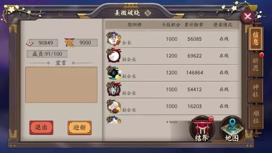 阴阳师参与指定寮活动还可以获取个人奖励“功勋”;而功勋的获得方式,不仅包括本次新增的寮集体任务、首领退治等,在逢魔之时等一些玩法中也有掉落!寮成员可以在功勋商店中兑换福利道具,寮等级越高可以购买的商品种类越多。
