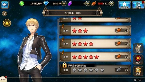 根据官方透露的截图信息,挑战吉尔伽美什前,小伙伴们可根据自己的实际情况,选择消耗体力开启,或不消耗体力、直接加入其他玩家的队伍中。BOSS降临玩法有不同的挑战难度等级,难度越高,获胜后的奖励也越丰厚,但对玩家的等级和实力要求也就越高。因此,想要战胜最高难度的吉尔伽美什,你不仅要达到指定等级、麾下有一众“精兵勇将”, 更需获得神队友助阵。