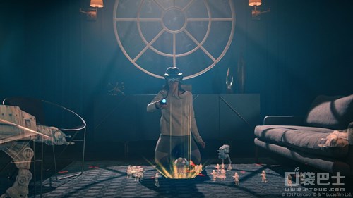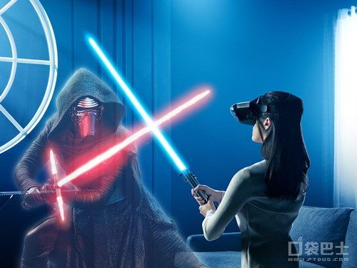 据悉,在体验之前并不需要太多繁琐的工作,只需把装有“星战”AR游戏的手机插入到AR头盔当中,戴好头盔,放置好全息信标定位球,拿起酷炫的“天行者光剑”,即可与黑暗武士展开决斗,或者带领反抗军队抵御帝国士兵,或者在千年隼号飞船中玩全息象棋……