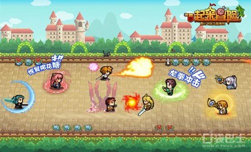 《一起来冒险》由日本角川书店正版授权,以骚人骚话的风格为基调,让不同世界的英雄相互和谐的混搭。设计师在原有的形象上进行了美术升级,游戏采用了一贯的日式rpg画风,风格明快,色彩对比鲜明。每张地图中绚丽的背景,地图上的日式建筑,既保留了你熟悉的像素特色,又增添了更具新鲜感的细节设定,在地图场景、道具设计、UI和复古又精致的像素化上,让玩家如同回到了童年的红白机年代!