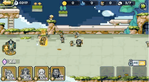 游戏战斗采用的是类塔防的即时战斗方式,双方带着最多7名勇者战斗,勇者不仅有物、法、防、辅的属性区分,更有国家加成,勇者加持,成长羁绊等策略玩法。选好勇士后,战斗中还可以通过改变勇士出战顺序来合理利用资源,控制战局。