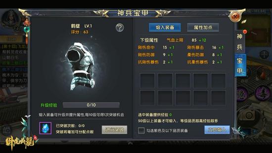 神兵宝甲升级突破 属性培养战力激增