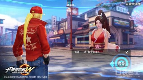 《拳皇世界》采用“高自由度都市模拟”将打电话、逛酒吧、机车兜风等现代都市元素完美融入到游戏当中。在《拳皇世界》中众多“拳皇”系列人气格斗家将会通过“打电话”的形式向玩家求助或者委托,玩家按照委托要求完成任务后不仅可以获得丰厚的回报,还能收获委托格斗家的友谊,与八神庵、草薙京、不知火舞等人气格斗家建立深厚的羁绊。