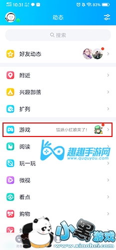 然后在QQ里面,需要直接点击游戏,进入游戏中心。