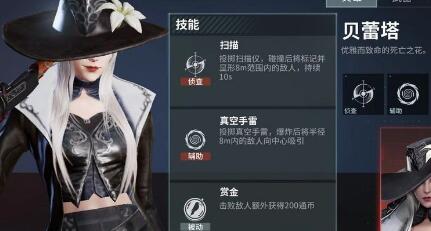 一技能是扫描,扫描的效果是可以扔出一个扫描装置,有10秒的时间可以显形其8M内的敌人,这个技能的扫描安全性很高,并且可以帮助贝蕾塔完成偷袭。