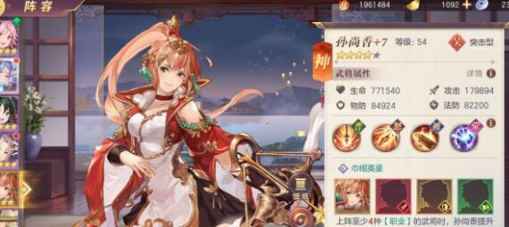 其次孙尚香的羁绊效果是有四种职业的武将上场时,是可以提高孙尚香的暴击率。