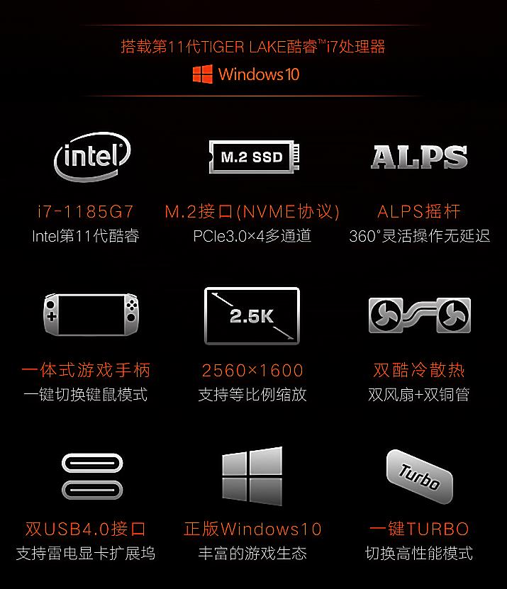 新品配置了一块8.4英寸2.5K分辨率的“巨屏”,这在同类产品中可谓是庞然大物的存在;经典想双摇杆+十字键+XYAB的XBOX手柄布局;目前最新的第十一代酷睿Tiger Lake系列低压版芯片以及最大2TB的存储容量。这些配置在PC掌机品类中已经是天花板的存在了。