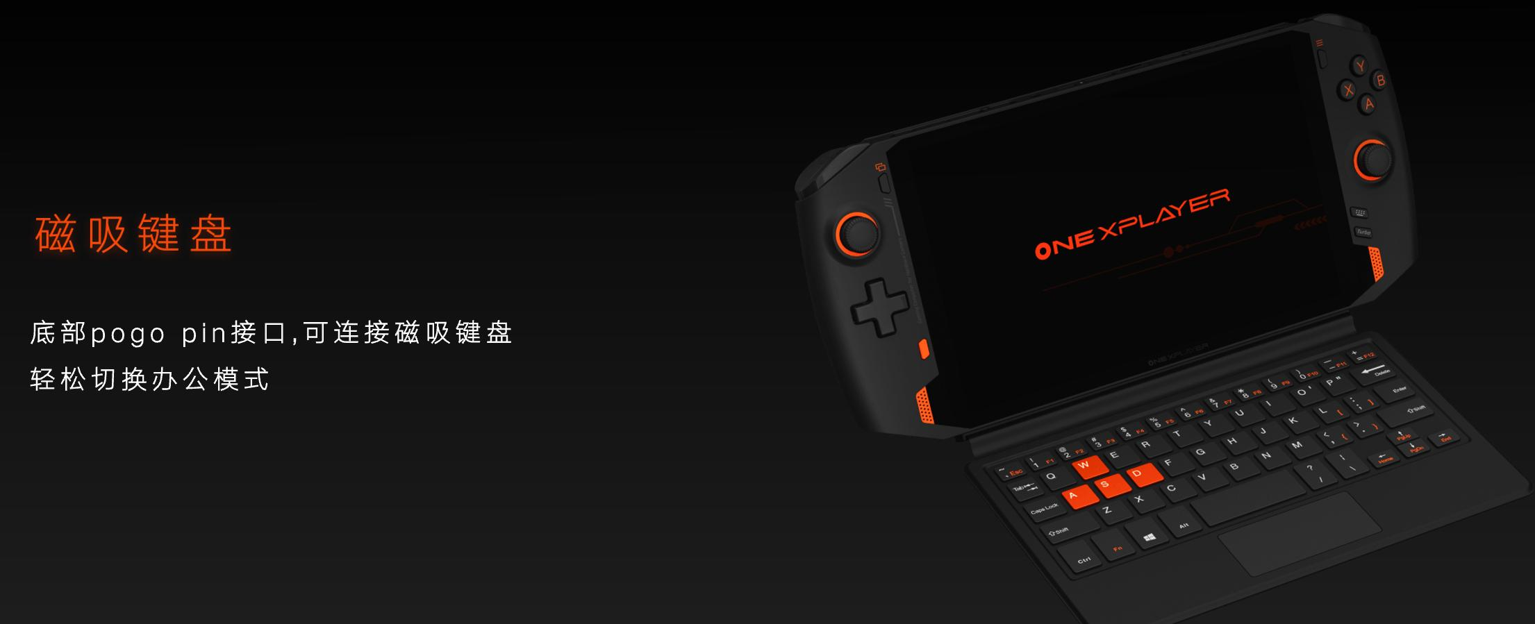 OnexPlayer还支持磁吸键盘,加上键盘之后就有完整的笔记本使用体验了,做一些轻度的办公操作,运行需要键鼠操作的游戏,都能够胜任了。