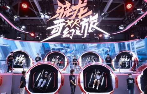 在骁龙嘉年华上,我们看到了相当豪华的骁龙XR幻想之旅区域。玩家可以坐在驾驶舱里,系好护具,戴上头盔,潜入一个完全由虚幻场景构建的世界,进行一次令人兴奋的冒险。你会看到没有现实的东西,但对操作的反馈和驾驶舱的摇晃提醒你,虚拟和真实碰撞的真实感近在咫尺。