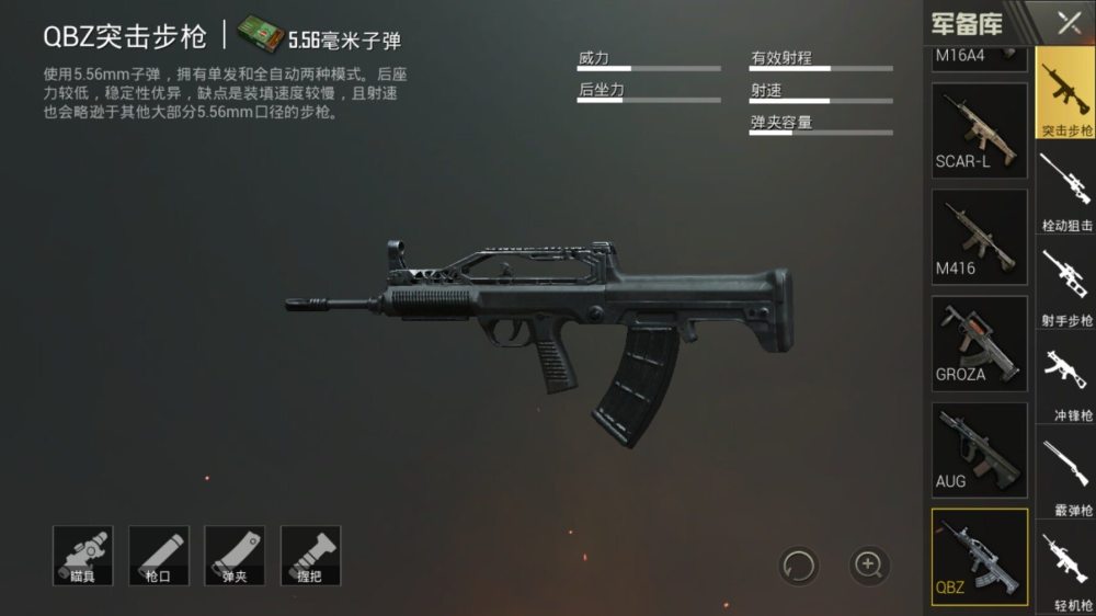 以上是小黑游戏为你整理的“刺激战场QBZ突击步枪数据配件介绍”的全部内容,想知道2019年有哪些好玩的手机游戏吗、玩的人最多的热门手机游戏吗?请关注小黑游戏权威手机游戏排行榜频道,获取最新手机游戏榜单。