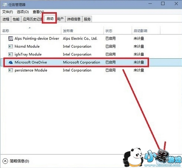 然后点击【启动】,找到里面的 Microsoft OneDrive一项,选中它,点击右下角的【禁用】。