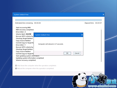 9. System GoBack Free 会告诉你此动作会覆盖掉目前的操作系统,单击〔OK〕继续。 接下来一样会问你是否要继续重新启动,单击〔Reboot〕继续重新启动。