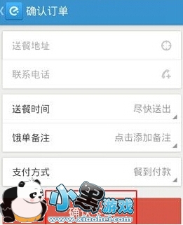 2、选择好食物以后,点击【确认美食】,如果你是老用户就可以付款等待没事到来。如果你是第一次使用,就需要你填写地址、电话等相关信息后点击【确认下单】。