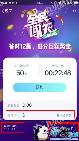 1、打开答题直播的主页,输入朋友的邀请码就能获得复活卡,而且你们的朋友也能获得一张哦~