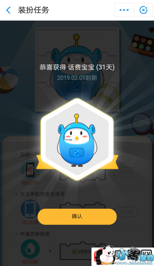当我们三块碎片都获得成功后,就成功兑换了话费宝宝套装了。快去装扮中穿戴上吧。
