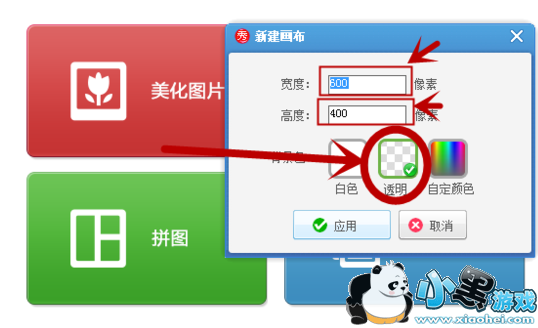 1、首先我们打开美图秀秀,并点击右上角的“新建”按钮创建一个新的透明背景;