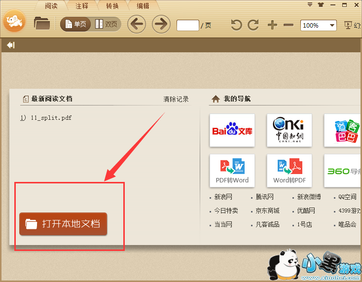 1、首先打开极速pdf阅读器,然后在其界面点击“打开本地文档”并将想要转换格式的文件添加进来;