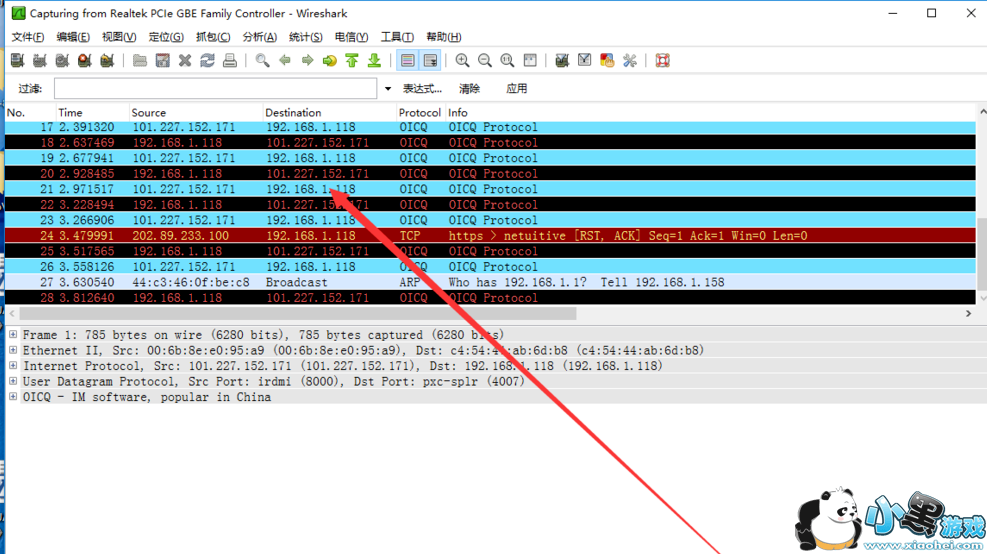 在这里我们可以通过源地址和目的地址来找到目标包,
