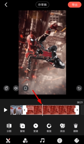 3、添加多段视频素材,一个个的选中视频再来设置“倒放”特效,通过右上角按钮导出作品即可。
