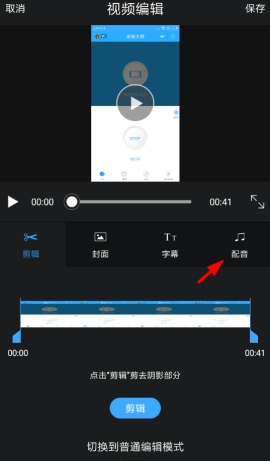 2、在视频编辑页面,选择右侧的“配音”按钮。
