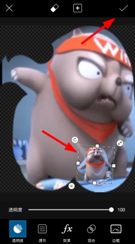 4、拖动摆放到合适的位置,点击右上角确认按钮保存合成图片。