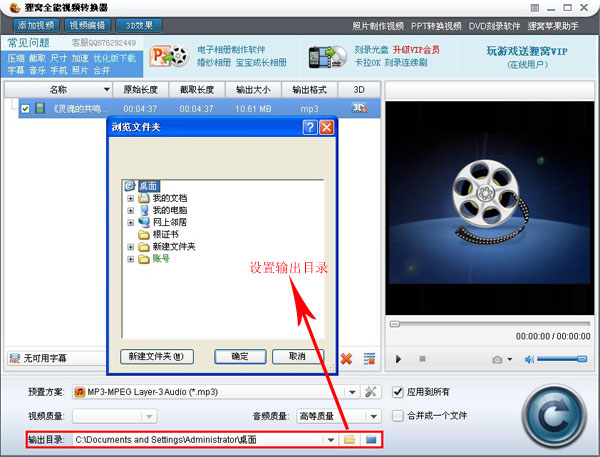 参数设置完成,点击确定按钮,回到软件主界面,此时就可以设置文件的输出目录,也就是转换后文件的存储位置,方便我们转换之后能立马找到文件。